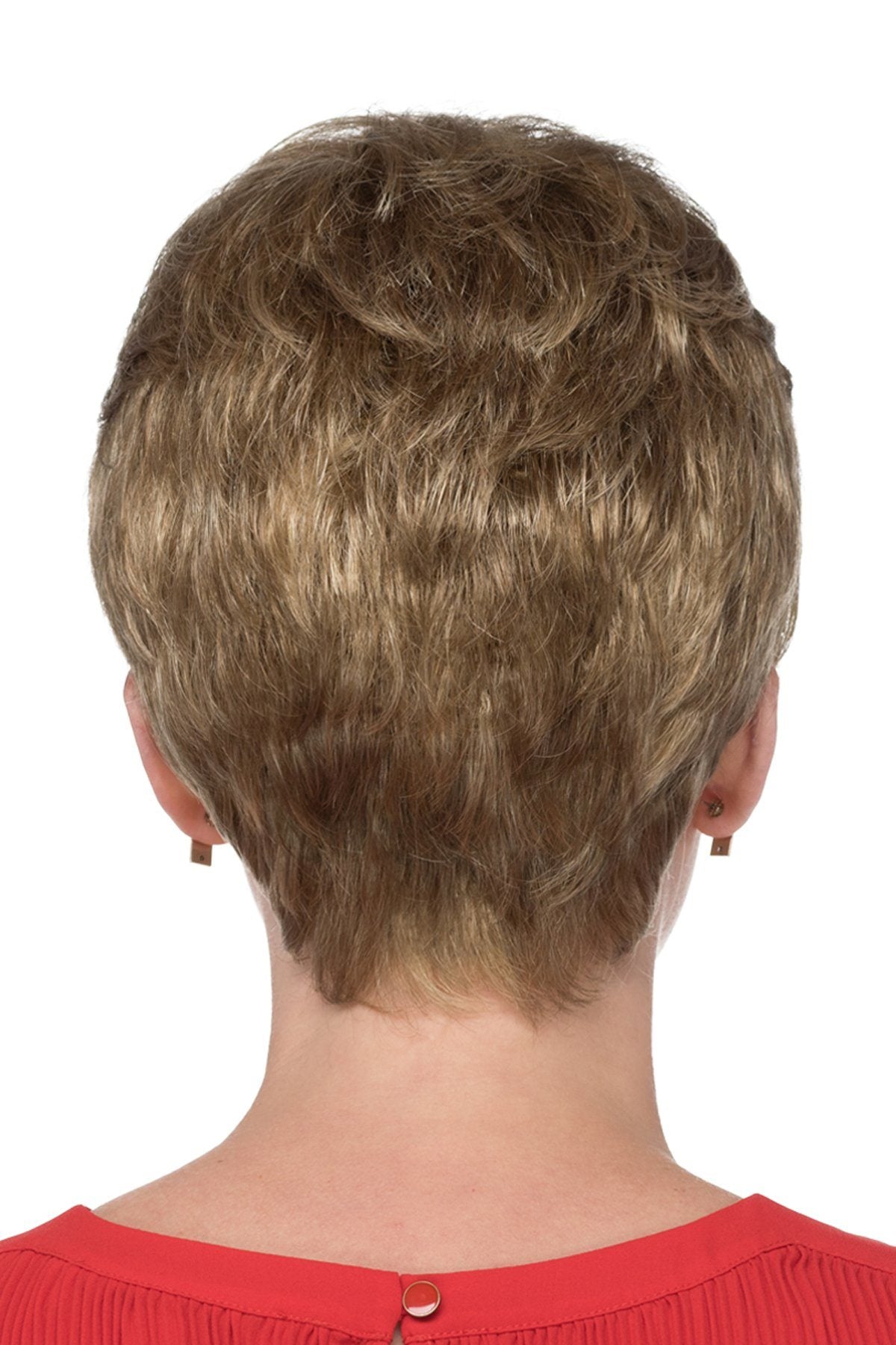 Short pixie cut with a monofilament top and a tapered nape.