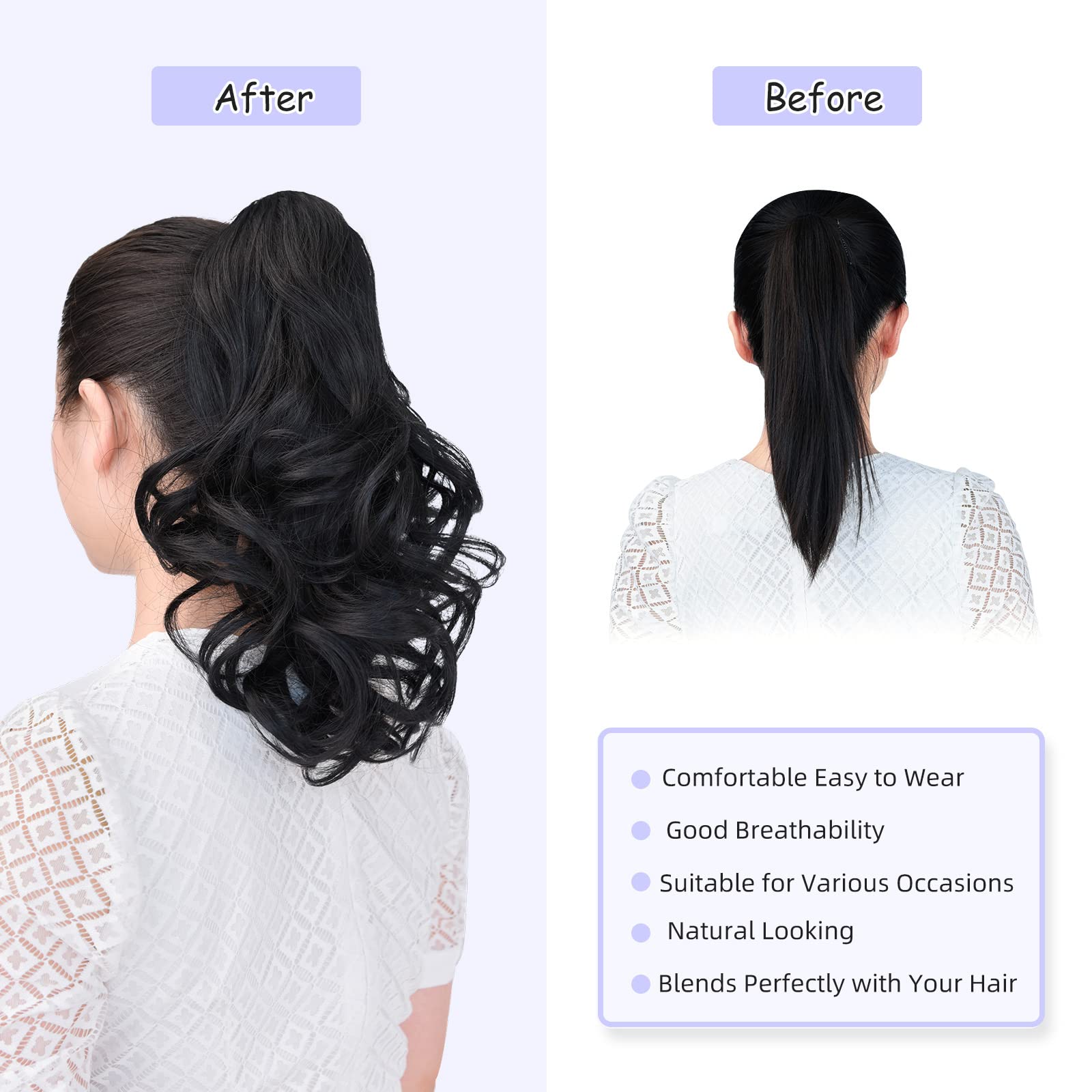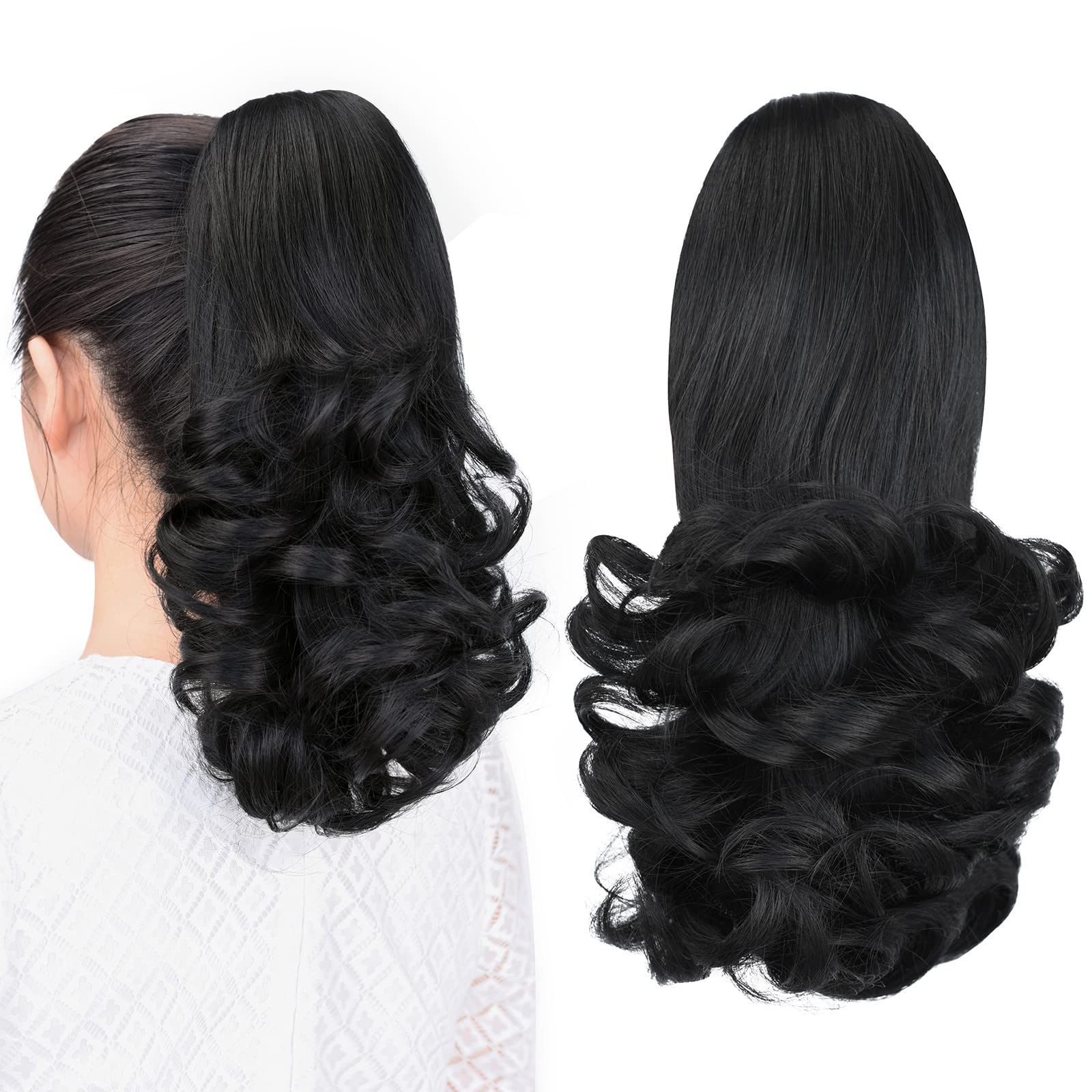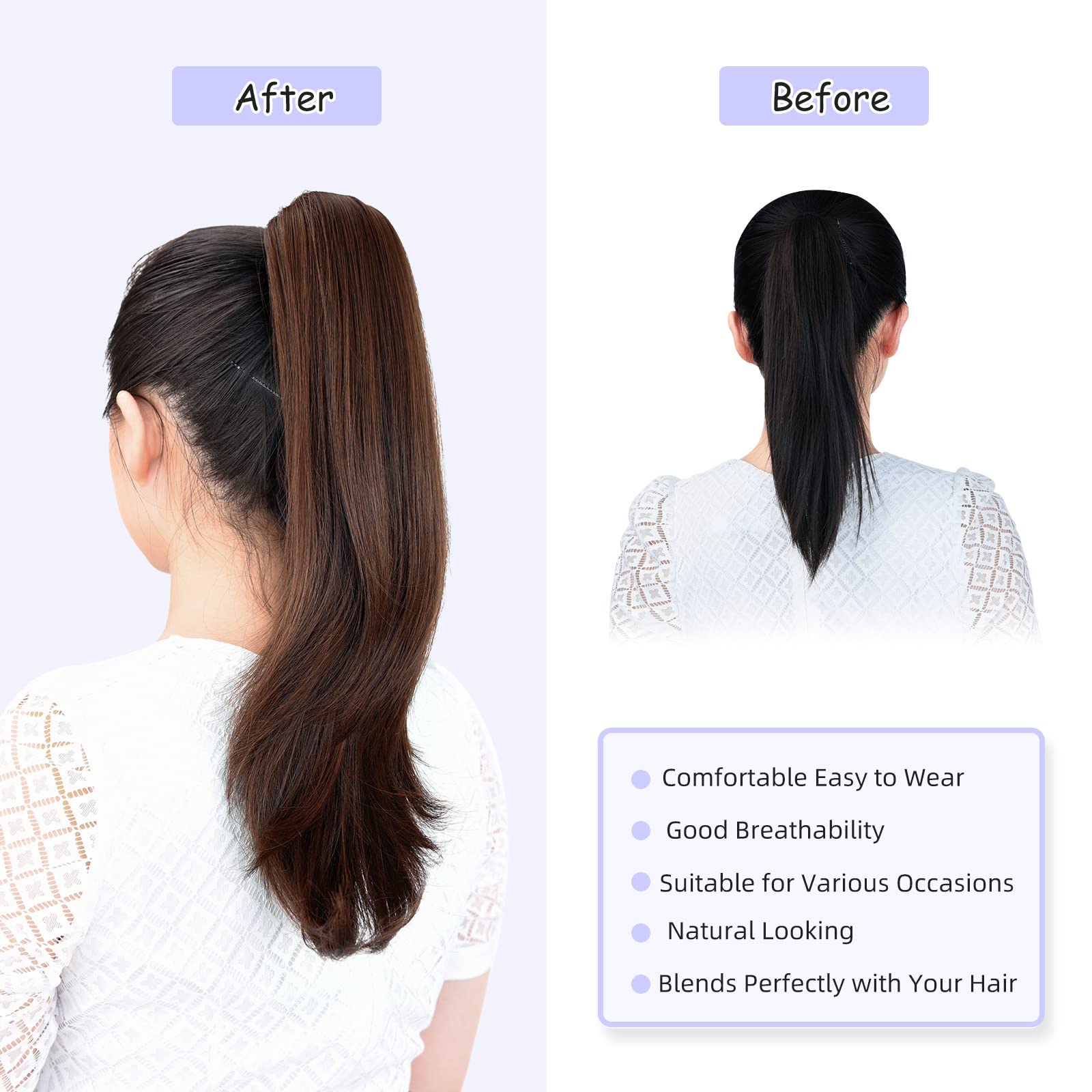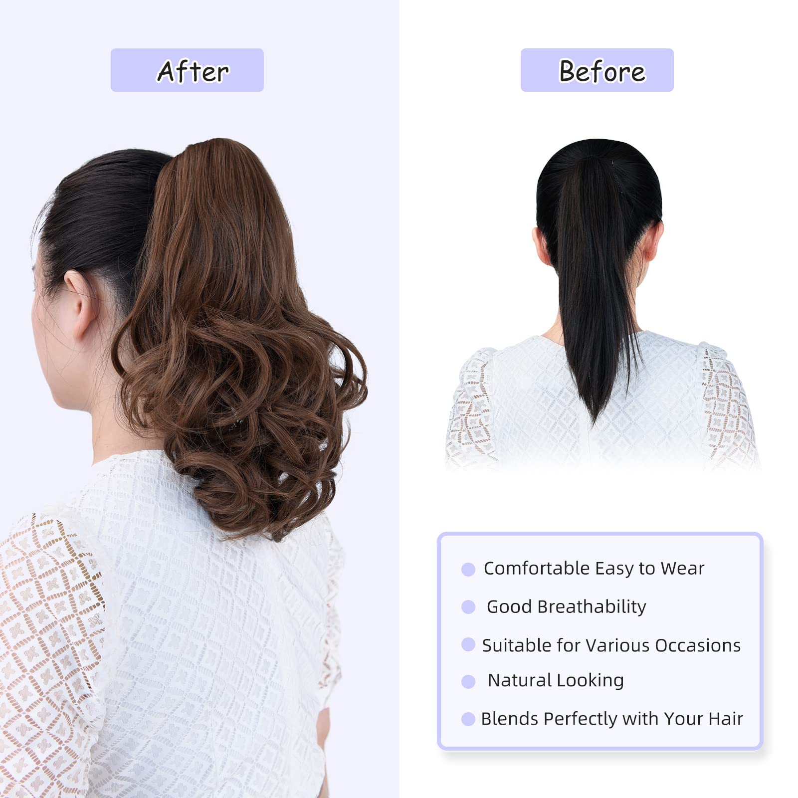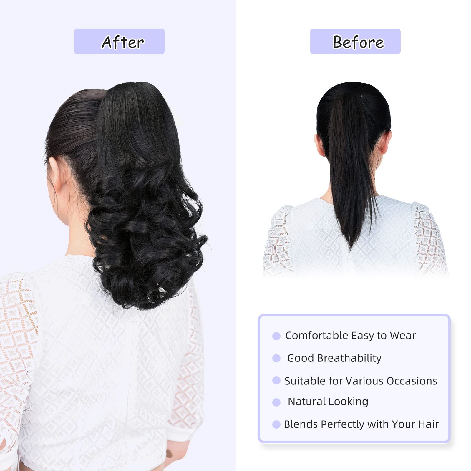 • Quick Hairstyle in 10 Seconds: Clip-In design gives you the full and luscious looks in less than 13 seconds.Time Saver! Great for medium to thin hair, and women with short hair can also make their hair longer. Ponytails can create a variety of different hairstyles that can be changed according to your dressing.