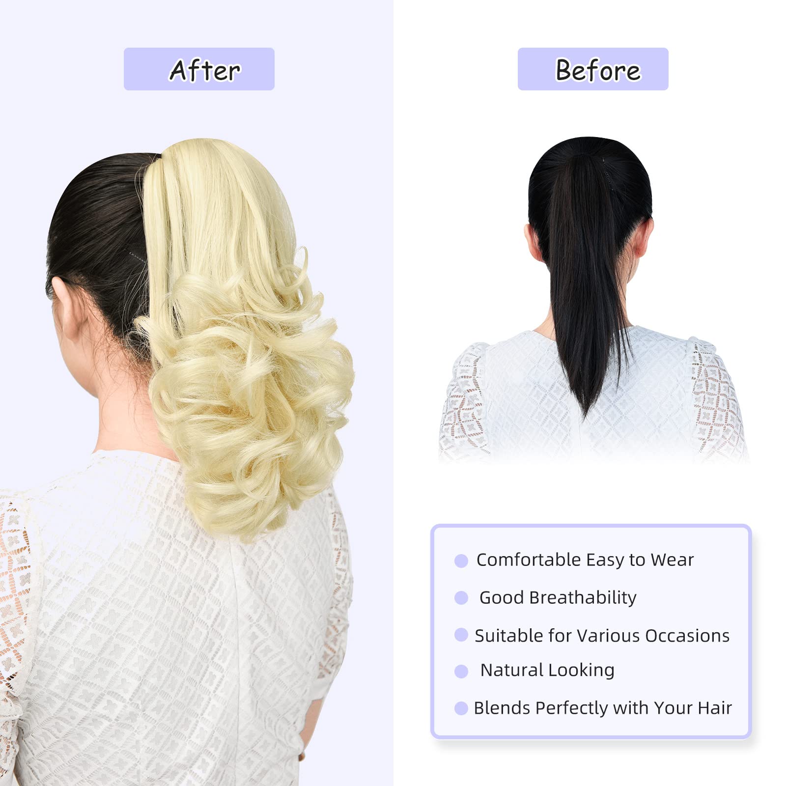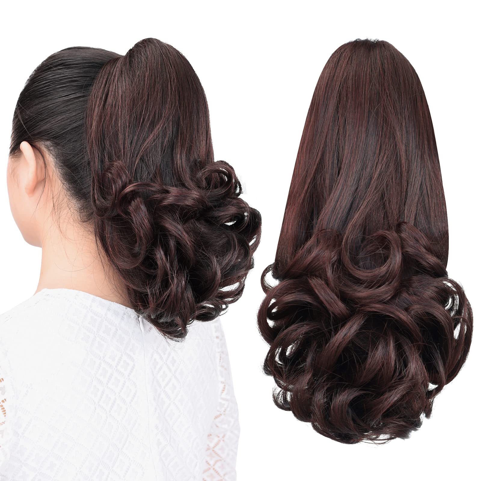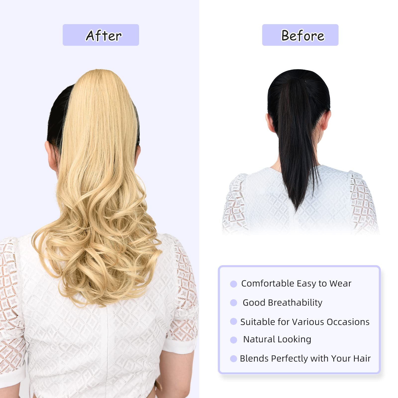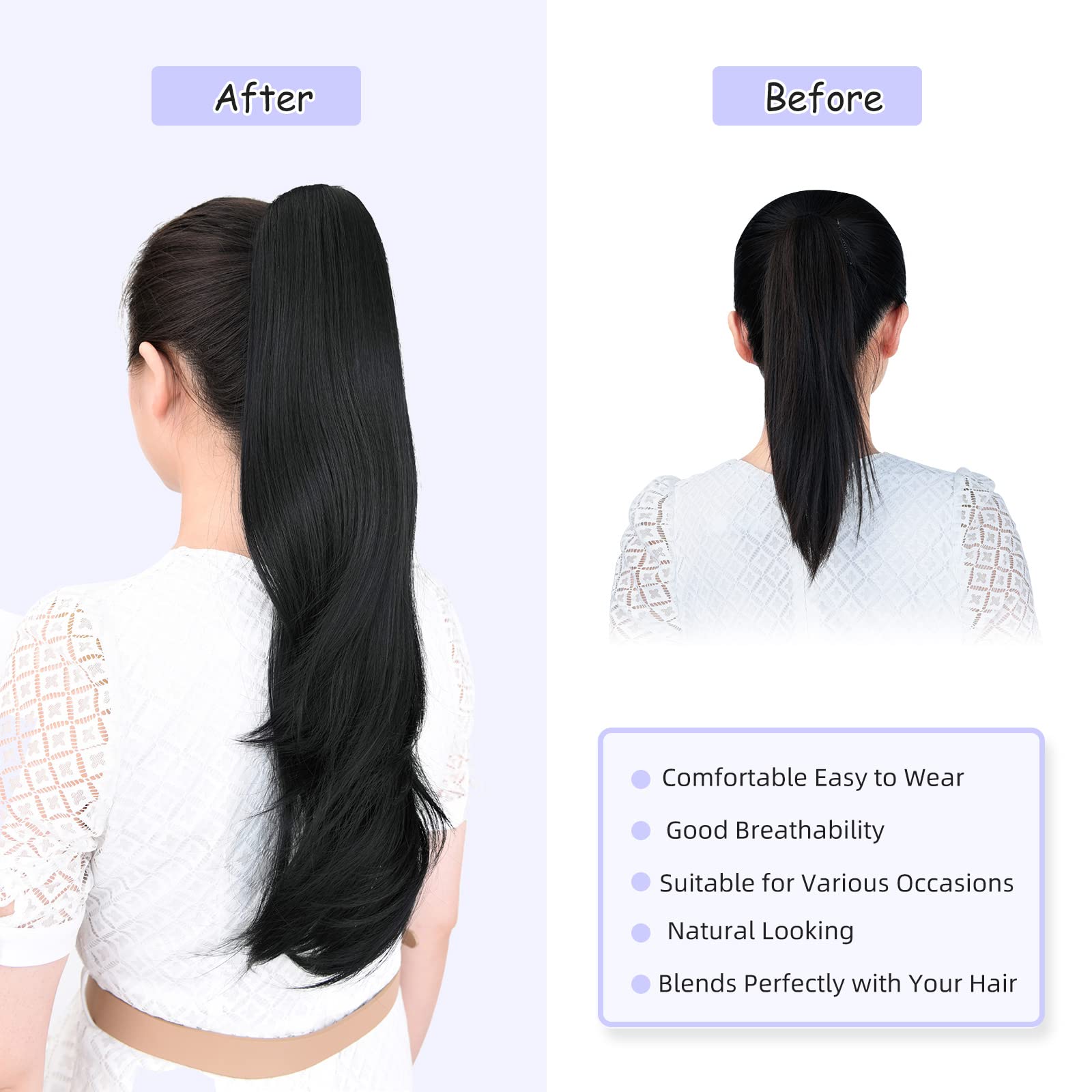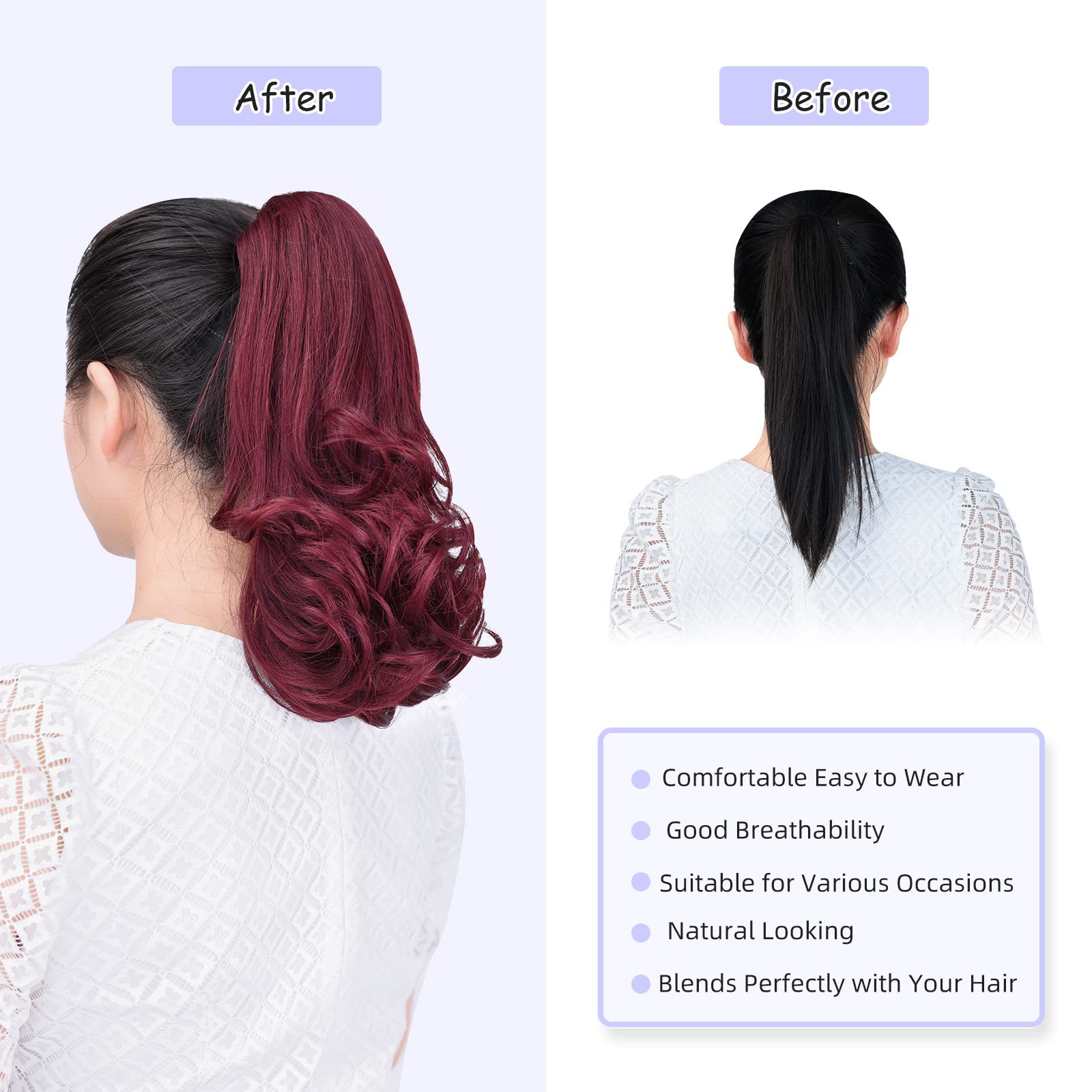 • Quick Hairstyle in 10 Seconds: Clip-In design gives you the full and luscious looks in less than 13 seconds.Time Saver! Great for medium to thin hair, and women with short hair can also make their hair longer. Ponytails can create a variety of different hairstyles that can be changed according to your dressing.