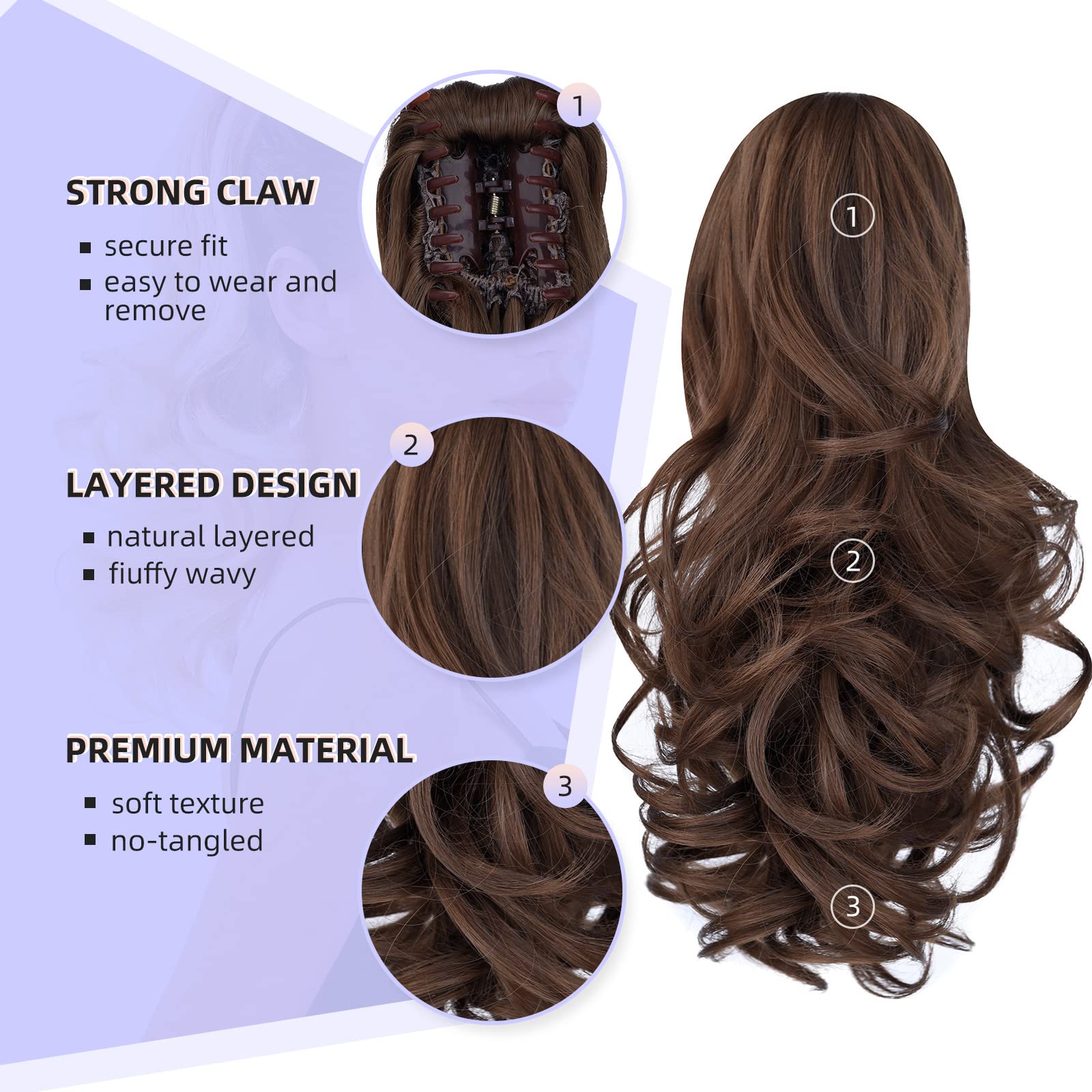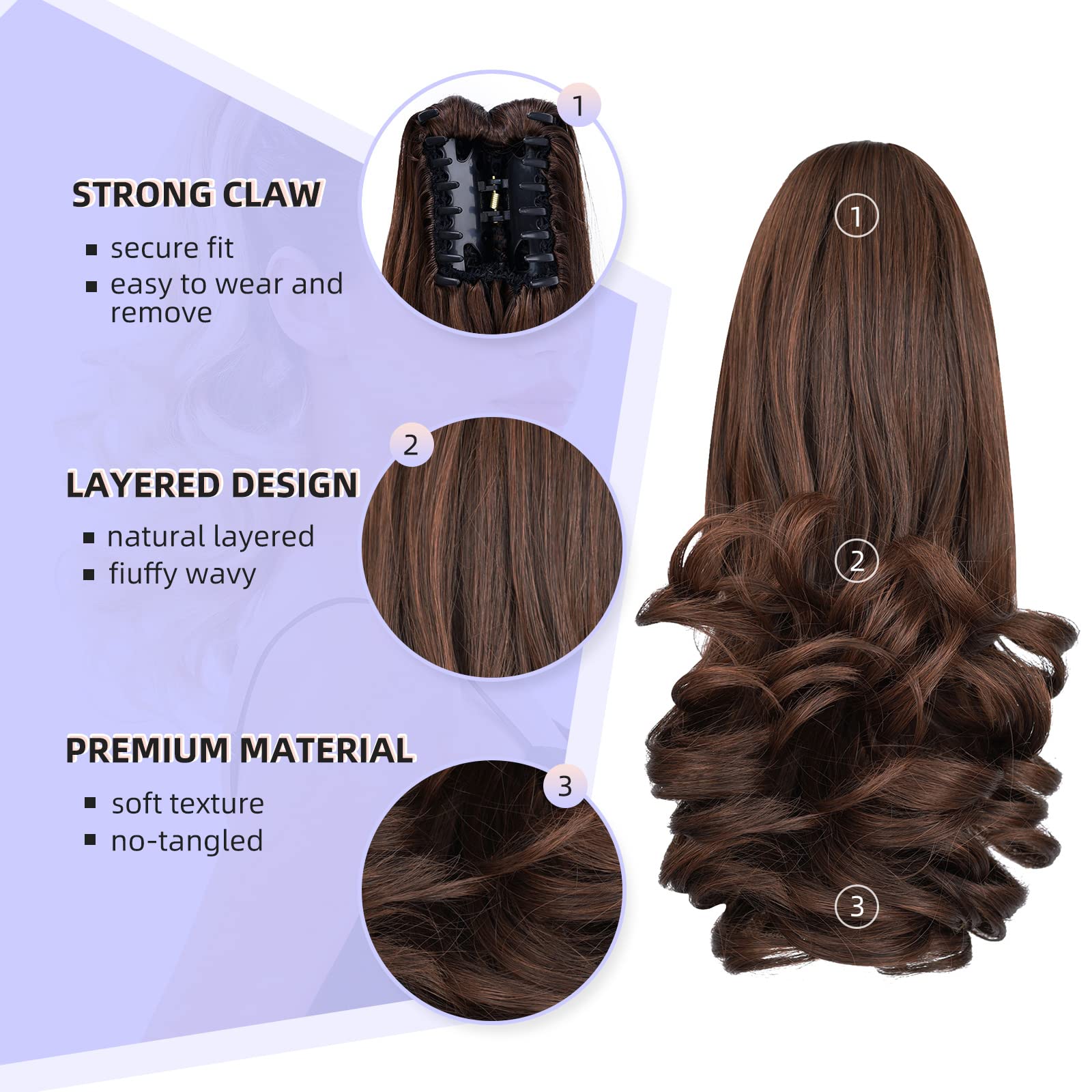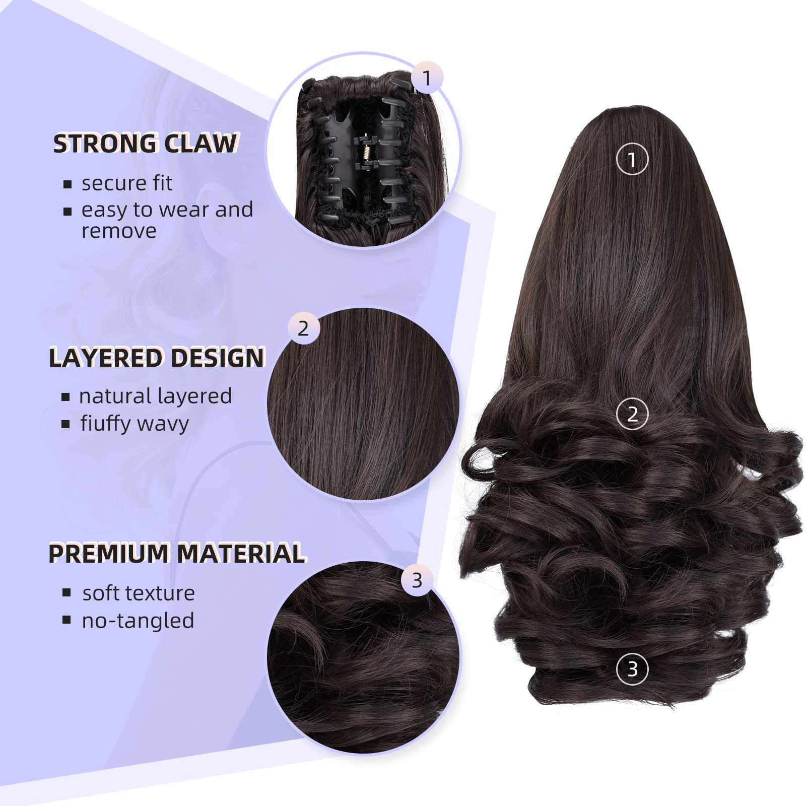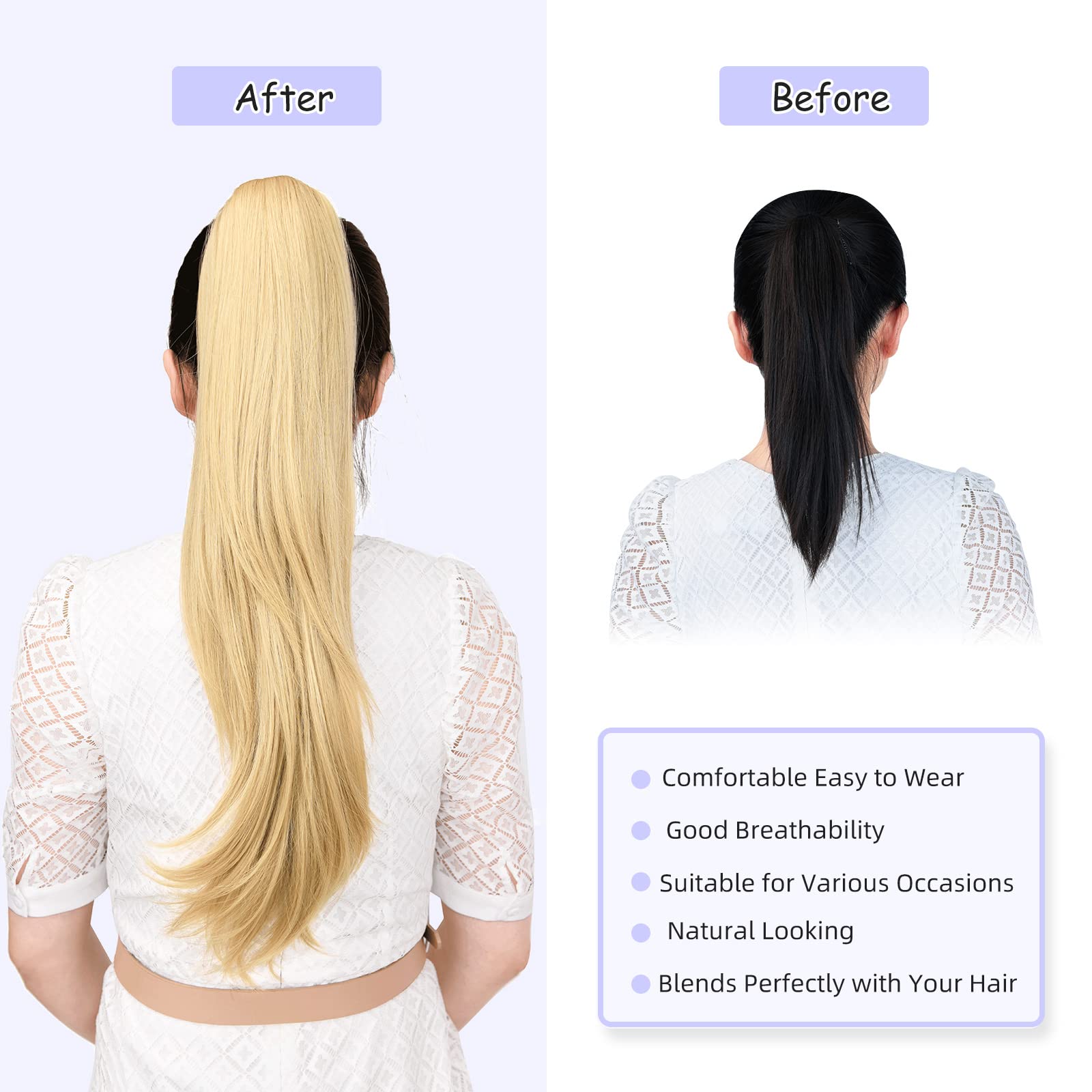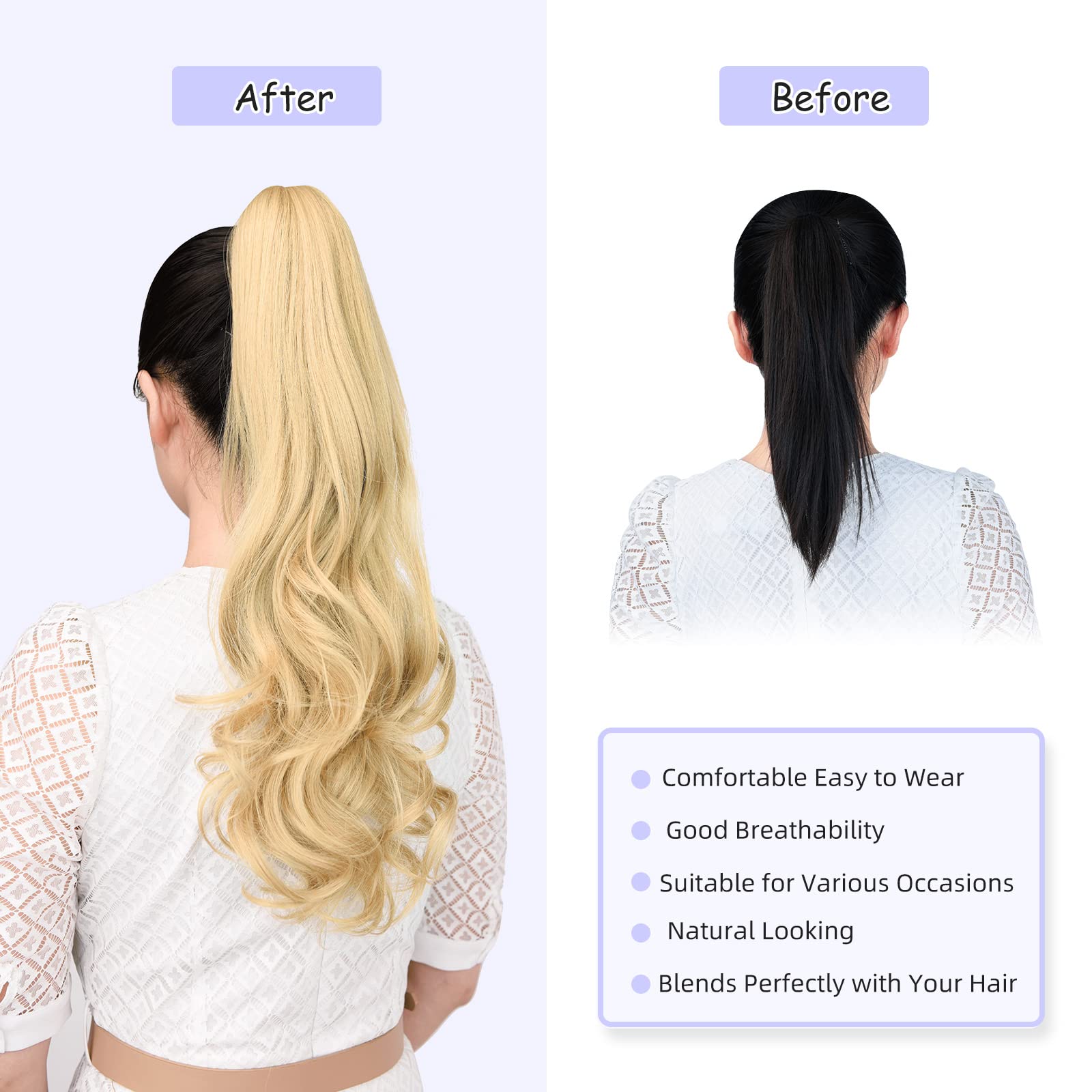 • Quick Hairstyle in 10 Seconds: Clip-In design gives you the full and luscious looks in less than 13 seconds.Time Saver! Great for medium to thin hair, and women with short hair can also make their hair longer. Ponytails can create a variety of different hairstyles that can be changed according to your dressing.
