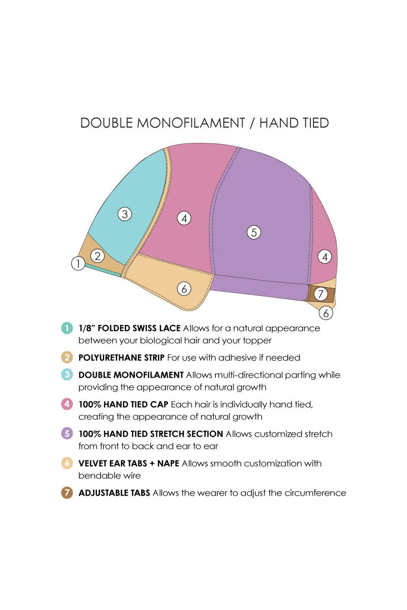 Wig Features: Double Monofilament, 100% Hand Tied, 100% Remy Human Hair, Heat Friendly