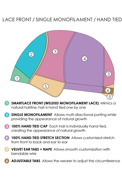 Wig Features: Lace Front, Single Monofilament, Hand Tied