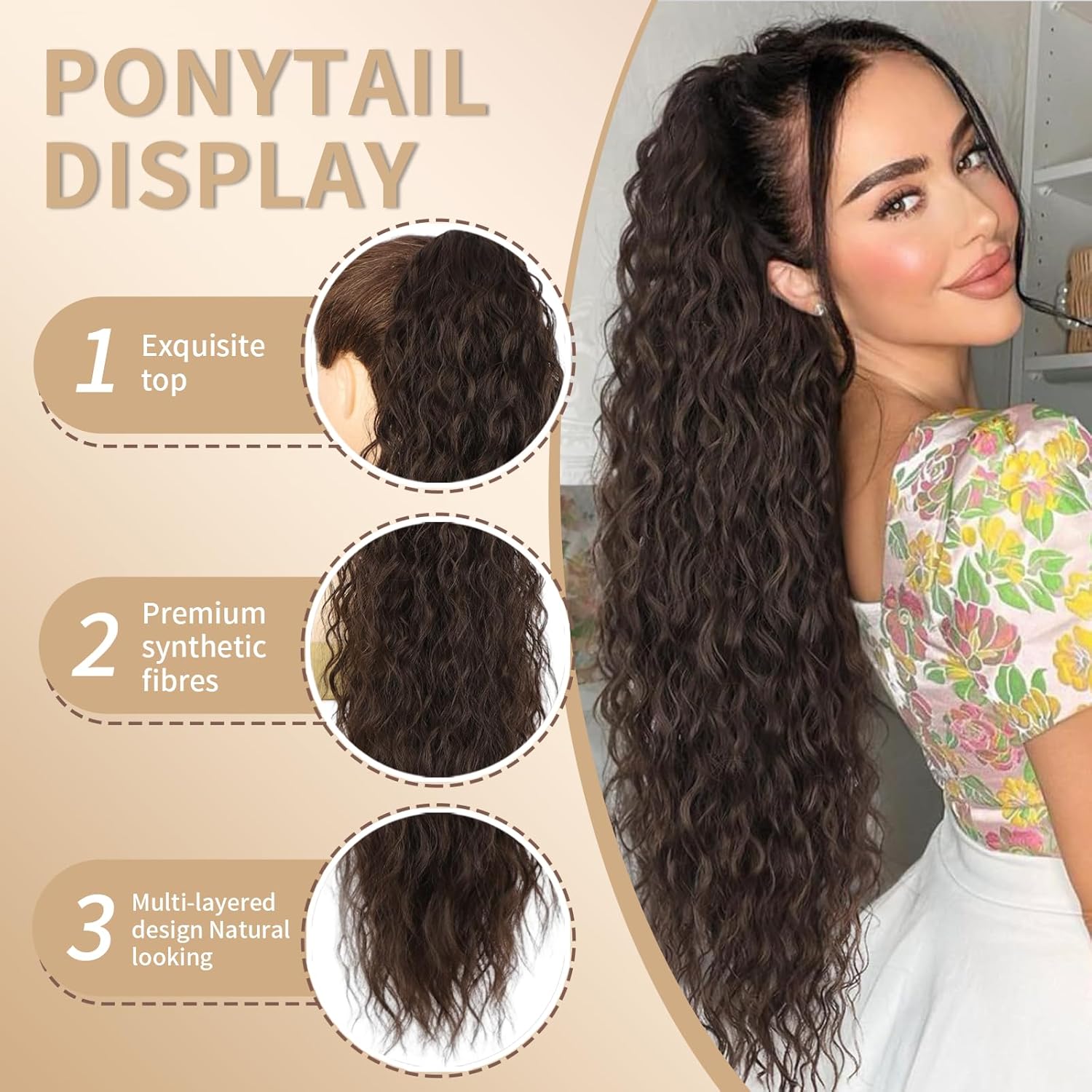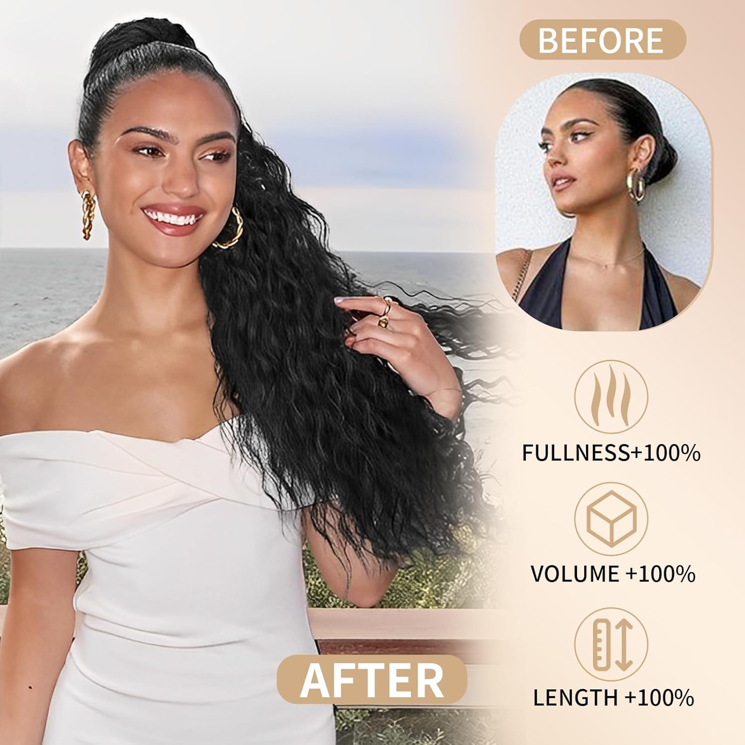 Crafted from high-quality heat-resistant synthetic fibers, this long wavy-curly ponytail delivers a soft, natural look that blends beautifully with your own hair. The upgraded claw clip with enhanced grip ensures a secure, comfortable hold — even on thicker hair types — so you can style with confidence all day.