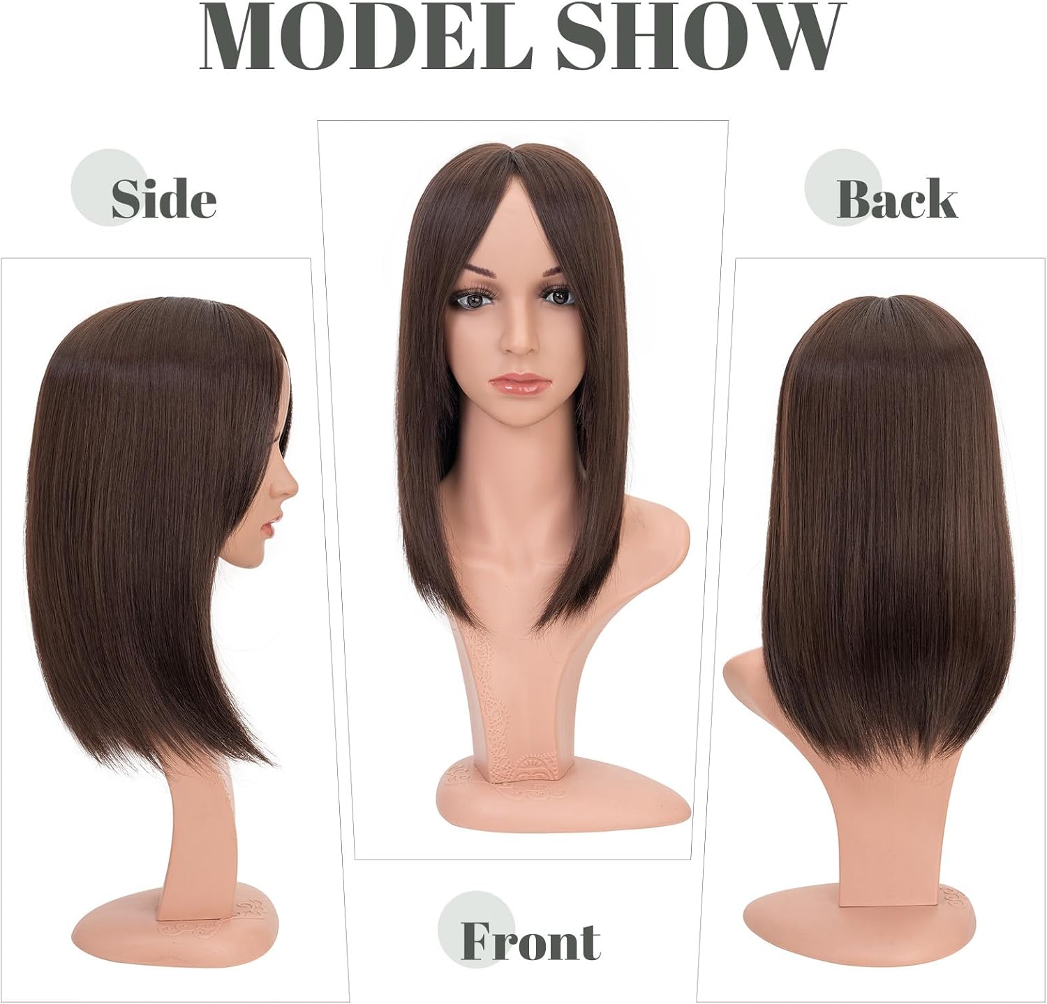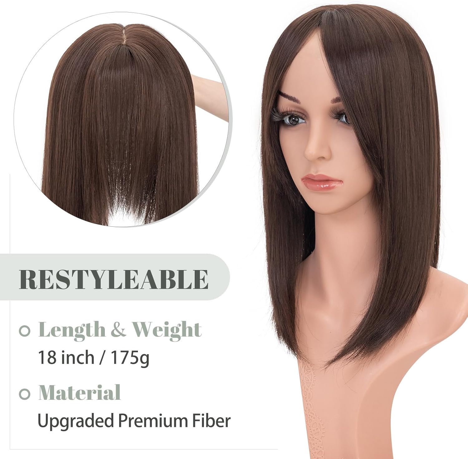 The rich dark brown shade blends beautifully with many natural hair tones. Style it straight, curled, or lightly waved—its high-elasticity synthetic fibers hold their shape wash after wash. For even more customization, you can trim or layer the topper to match your personal style.