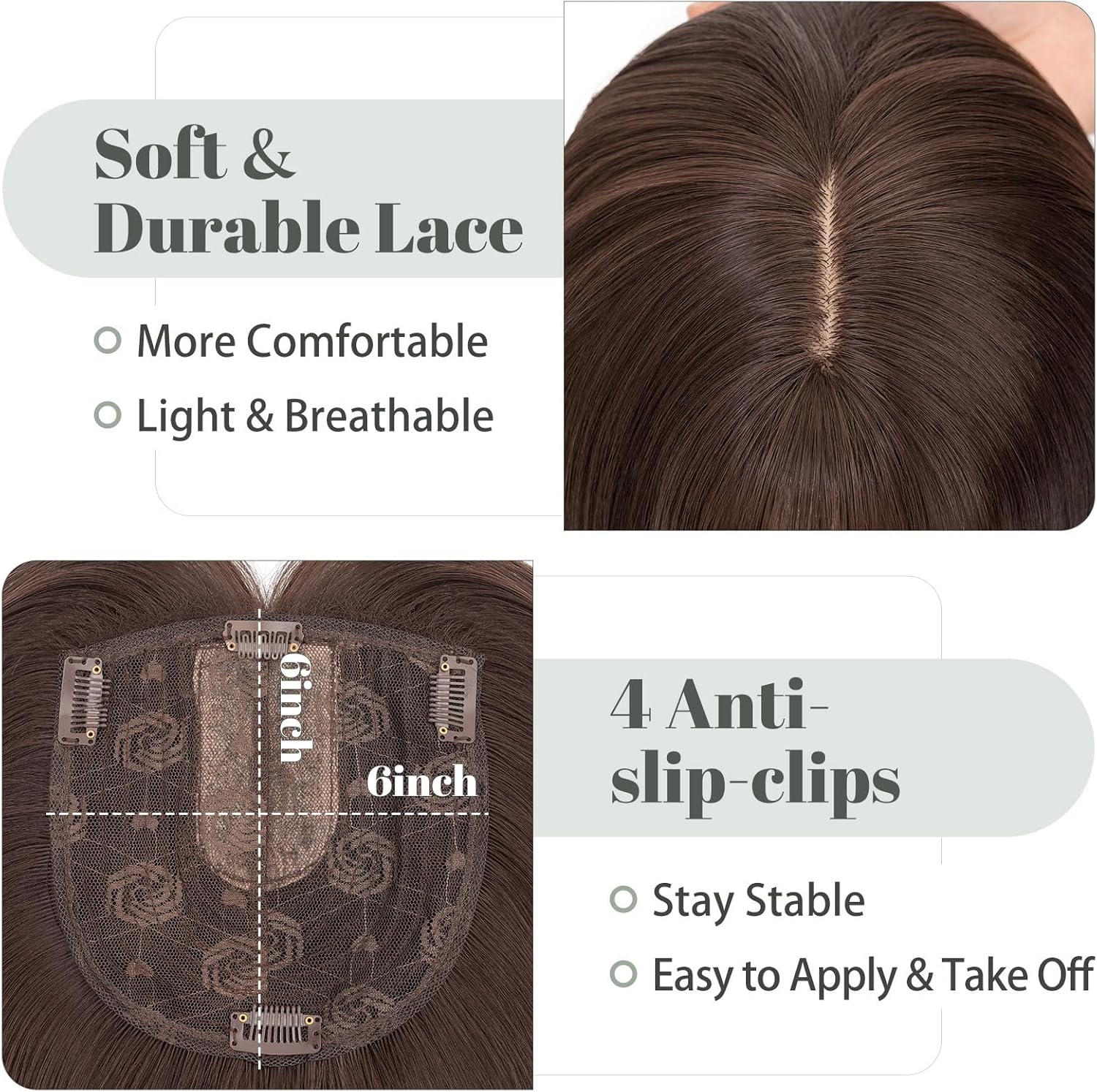 Instantly enhance your hair with fuller, natural-looking volume using our 6×6 Lace Base Synthetic Hair Topper.