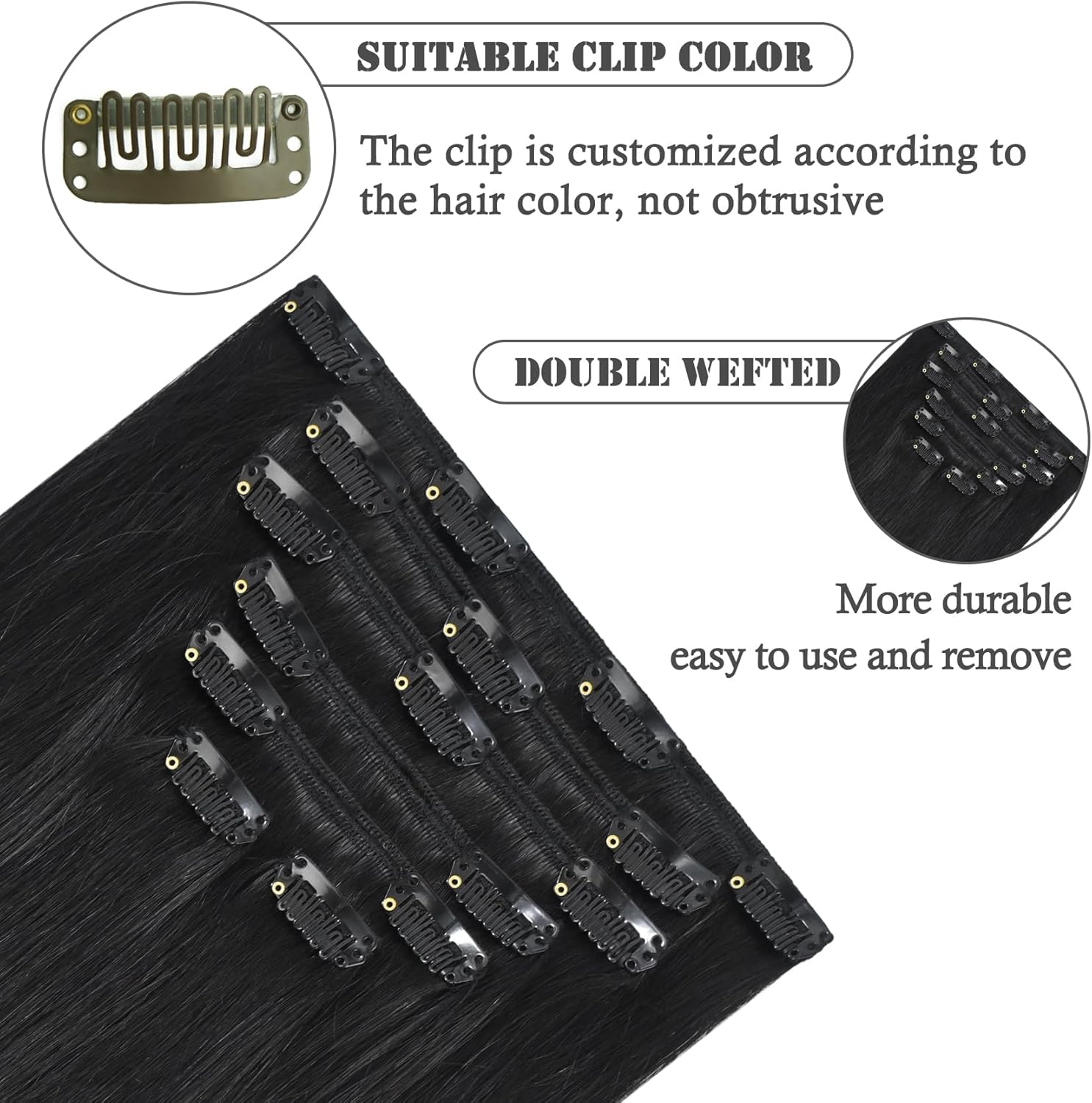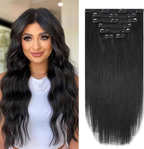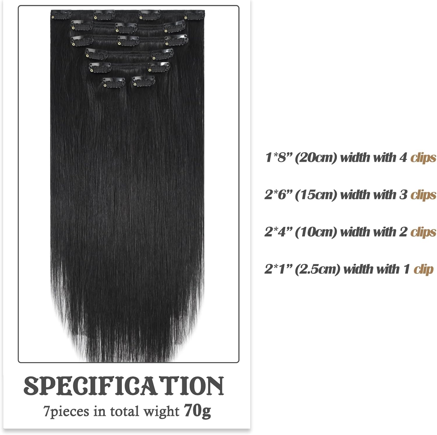 Elevate your look with luxurious Natural Clip-in Hair Extensions, crafted from 100% real human hair. These extensions seamlessly blend with your natural locks for an effortless finish. Designed for effortless wear and removal, they boast 16 durable clips that stay in place all day long. Perfect for enhancing the length and volume of your hair, they can be styled just like your own tresses. Each pack includes 7 pieces, weighing 70 grams, and can withstand curling, straightening, and all your favorite styles. Embrace the freedom to switch up your hairstyle without any commitment! Ideal for those seeking a quick glam-up, these extensions are soft, silky, and available in a variety of colors. Designed to last with proper care, they not only add length but also confidence.