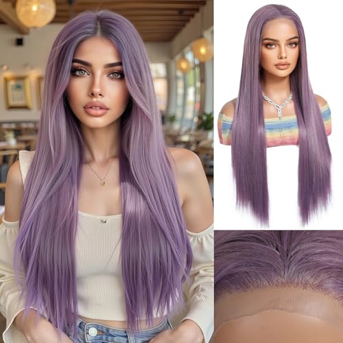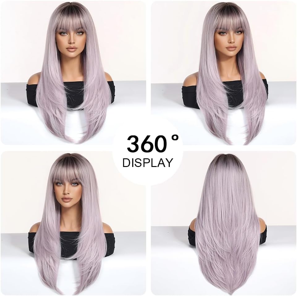 This charming ombre light purple wig is made of soft and natural synthetic hair. It has a nice thickness and weight, and the fibers feel nice and soft without tangling easily. The wig has a natural part and front, making it perfect for daily use, costume parties, or just for fun. It's a great way to add some color and excitement to your look. The adjustable wig cap makes it comfortable to wear, and the average cap size is 22.5 inches. The wig is made of high-quality Japanese Kanekalon synthetic fiber, which is heat resistant and easy to style. It's a great choice for anyone looking for a stylish and comfortable wig. The ombre light purple color is unique and eye-catching, and the long straight style is perfect for creating a dramatic look. The wig is easy to care for and can be styled with a wide-tooth comb or a wig brush. It's a great addition to any wardrobe and can be worn for a variety of occasions. The wig is also a great way to express your personality and add some flair to your look. With its natural-looking hairline and comfortable fit, this wig is perfect for anyone looking for a high-quality and stylish hairpiece. It's a great choice for daily wear, and it's also perfect for special occasions like parties or weddings. The wig is made to last and can be worn for a long time with proper care. It's a great investment for anyone looking for a high-quality wig. The ombre light purple color is unique and stylish, and the long straight style is perfect for creating a dramatic look. The wig is easy to style and can be worn in a variety of ways, making it perfect for anyone looking for a versatile and stylish hairpiece. It's a great way to add some color and excitement to your look, and it's perfect for anyone looking for a high-quality and comfortable wig.