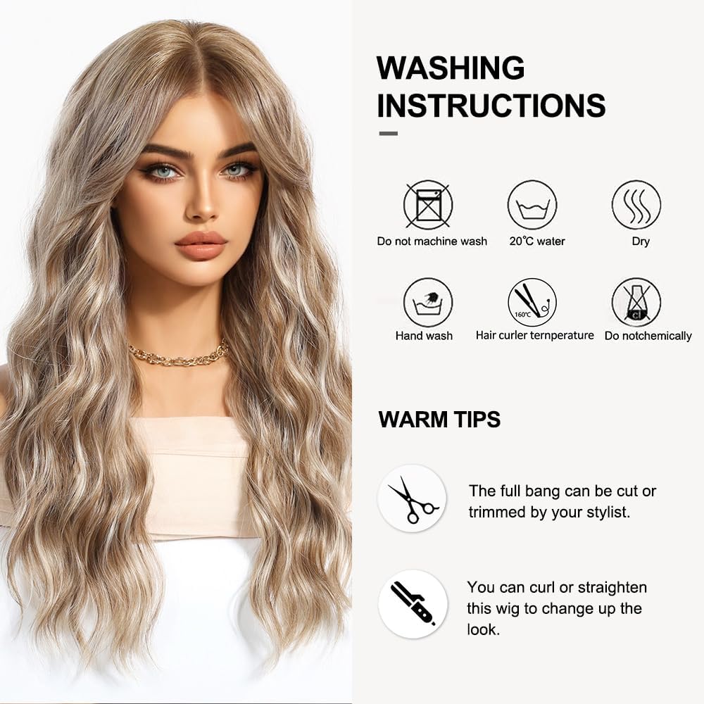 Ash Blonde Brown Long Wavy Wig