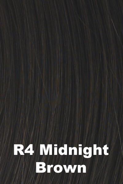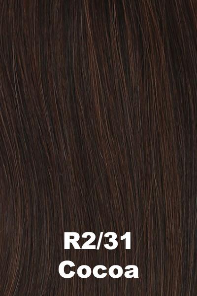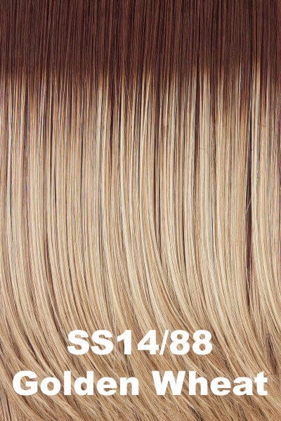 Wig Colors: Cocoa (R2/31), Midnight Brown (R4), Chocolate Copper (R6/30H), Chestnut (R10), Honey Ginger (R14/25), Golden Wheat (R14/88H), Ginger Blonde (R25), Glazed Strawberry (R29S), Glazed Hazelnut (R829S), Glazed Cinnamon (R3025S)